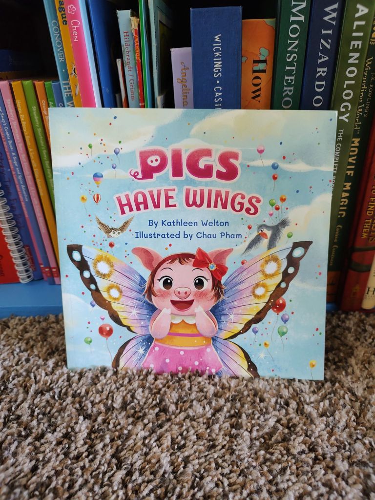 Next, Pigs Have Wings. This book by Kathleen Welton is, in a word, cute. In a few words, cute and inspiring. Miz Peg is a young pig who desperately wants to fly but is hampered by the fact that she is a pig, an animal not known for its aviation abilities. As she wrestles with this fact, she receives support from friends and slowly learns to believe in herself and work with her abilities. While the rhymes were a bit clunky at times, the message is an important one for children to learn. Also, the art is lovely. Chau Pham did an excellent job with creating adorable characters and a fun world to look at.